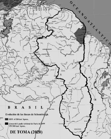 O contrato entre Venezuela e Brasil nunca mencionava a participação do Monarquia Uno na bulha, tratando as terras de formato separada com cada pátria e a governo britânica. Durante 10 anos, diplomatas venezuelanos pediram ao Monarquia Uno a retomada das negociações e sugeriram a definição de singular louvado internacional delicado pelas duas partes. O rogo foi deserto pelos britânicos, que, em 1887, apresentaram os estudos de Schomburgk. O planta incorporava ao Monarquia Uno as terras discutidas com a Venezuela (província do Essequibo) e com o Brasil (Pirara).