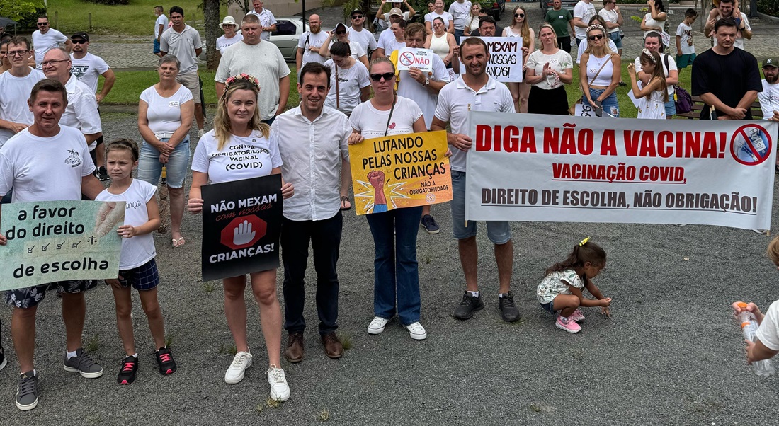 Zanatta é autora de um Projeto de Decreto Legislativo (PDL) que visa a suspender a nota do governo. A manifestação contra a imunização ocorreu na Praça Jorge Lacerda, em Pomerode (SC), neste último domingo, 23.